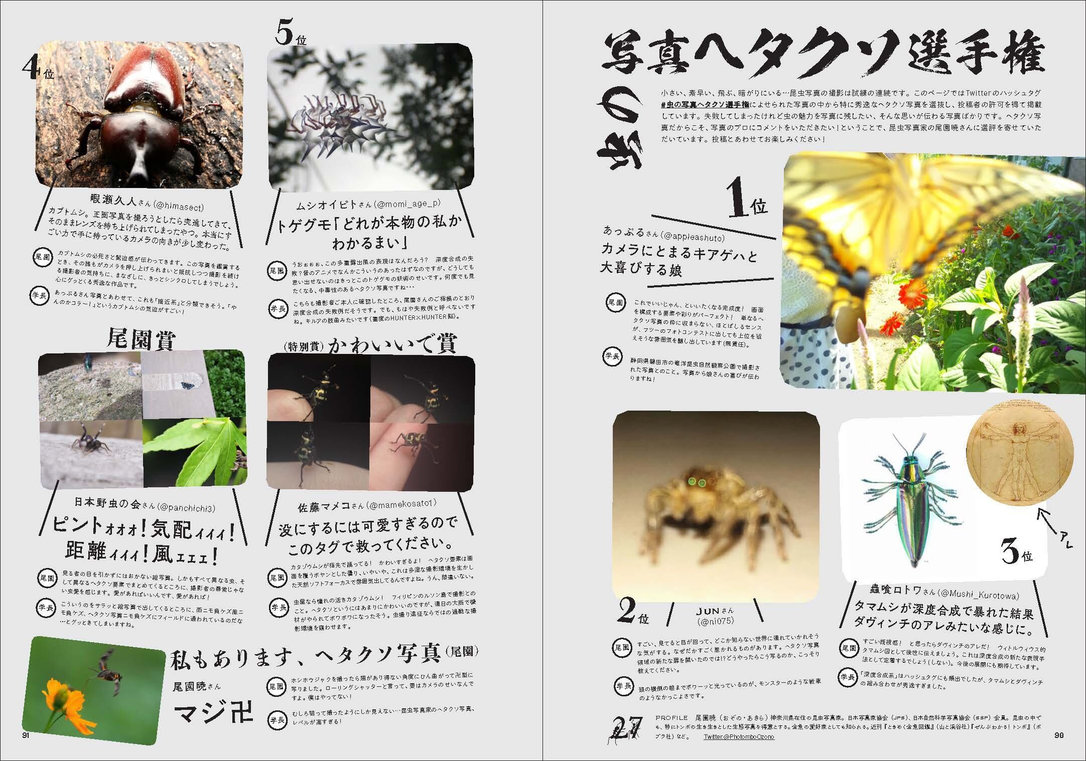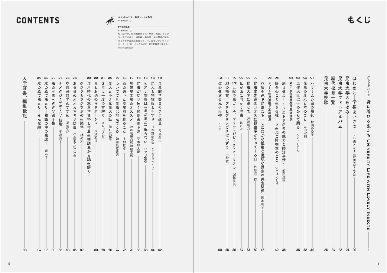 寄稿(掲載順):秋山あゆ子、丸山宗利、タカイヒロシ、須黒達巳、いそはえとり、岡本朋子、佐伯真二郎、近藤聡乃、ほだか、堀越英美、小松貴、いるま、長島聖大、とよさきかんじ、ヒアリ警察、荒木健太郎、政所名積、上村佳孝、始祖鳥堂書店、熊野友紀子、メレ山メレ子、樹液酒場、林亮太、URBAN SAFARI、福富宏和、宇高寛子、森ふき